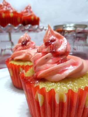 I will admit, I was dubious as to how this would come together. But I needn't have worried. My taste testers loved them. One wants a bowl just of the buttercream for their birthday, which I was quite pleased to hear. Part of me thinks that's down to the quality of the jam, since it was homemade by the fiancé's sister. And it's true what they say: good quality ingredients results in great tasting food. The fiancé said the cakes were lovely, light and fluffy and the flavour was indescribable but was sweet and very scrumptious. So good reviews it seems. Hoorah!
